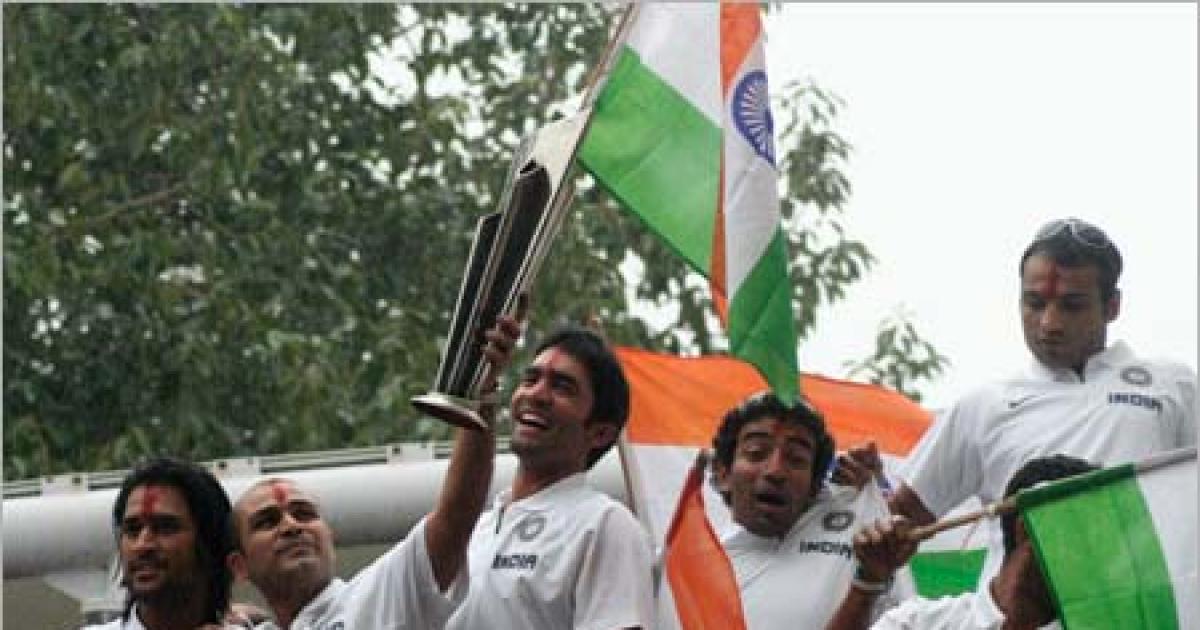 Yuvraj and Sreesanth have established themselves as the cheerleaders, dancing non-stop on the roof of the bus, and exhorting the fans lining the roads to applaud, to dance, to celebrate. The bus is travelling at a little over walking pace along Mumbai roads, trailing the contingent of fans running alongside, and the media in two buses following the team bus.