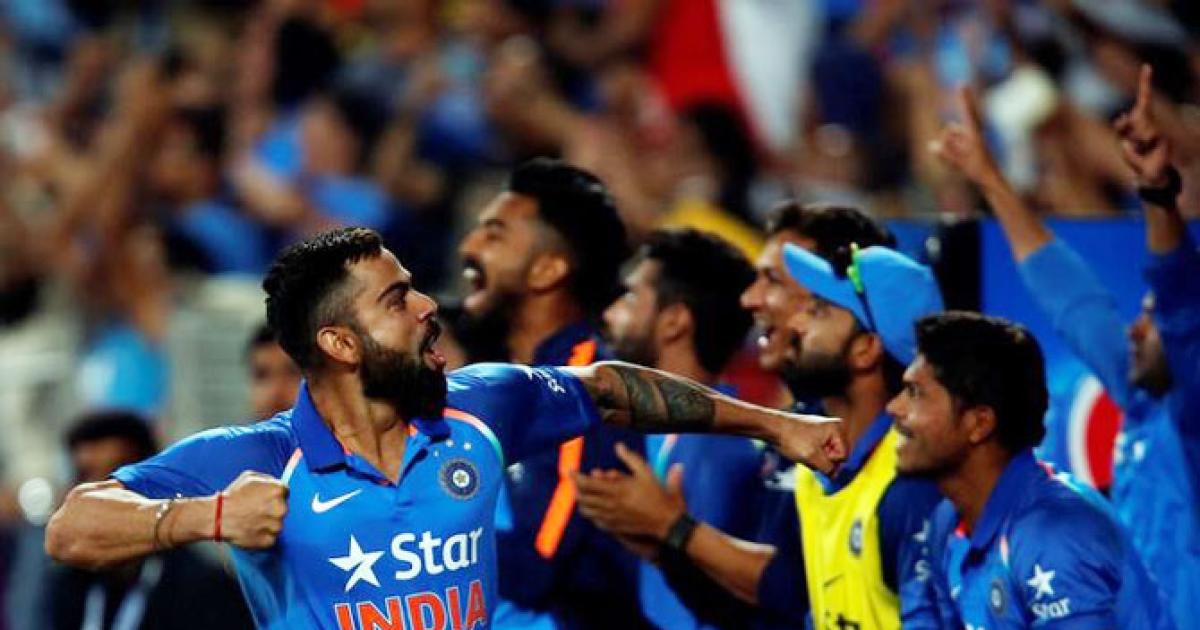 IMAGE: India's captain Virat Kohli celebrates after winning the first ODI against England at the Maharashtra Cricket Association Stadium in Pune, January 15, 2017. Photograph: Danish Siddiqui/Reuters