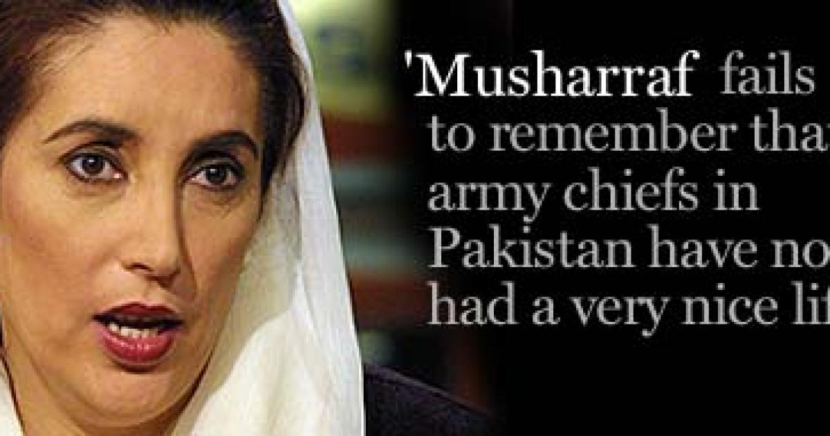 In an exclusive interview with Senior Editor Shyam Bhatia in London, Bhutto had disclosed that Musharraf, then her Director General of Military Operations, outlined a plan to infiltrate Kashmir and start a war that would end up, he believed, with the Pakistani conquest of Srinagar.
