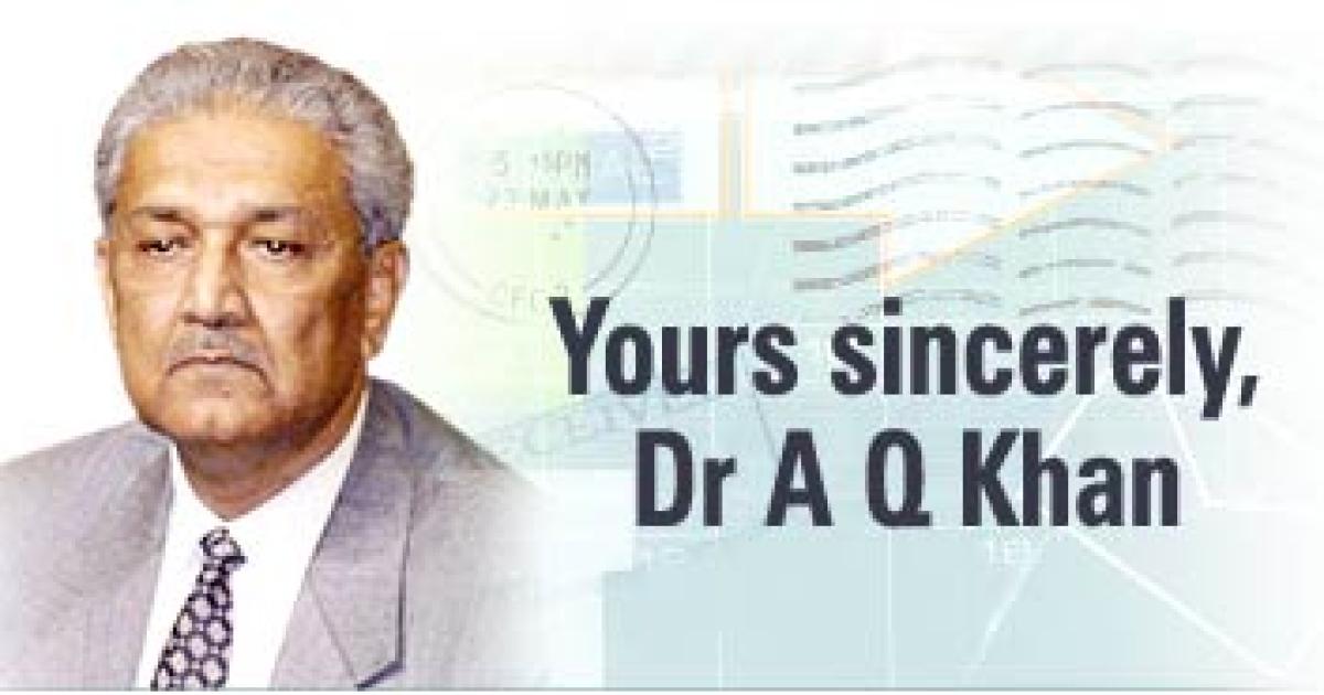 A handwritten letter from Dr Abdul Qadeer Khan to the editor of the Observer newspaper, dated July 21, 1980 has surfaced and provides a timely insight into the mind and personality of the 'father' of the Pakistani bomb.