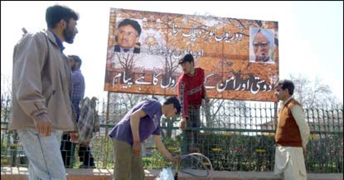 The Jammu and Kashmir government put up hoardings of Indian Prime Minister Dr Manmohan Singh and Pakistani President Pervez Musharraf along the 170 km long Srinagar-Muzaffarbad route.