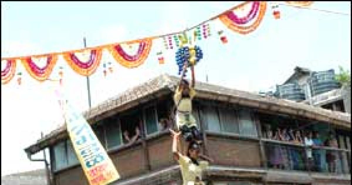 Groups of youths shouting "Govinda Ala Re" went about Mumbai forming human pyramids to get to the dahi handis (mud pots with curd and money) on Gokulashtami. Throwing gulal in the air, the participants competed with each other to get the jackpot, braving bucketsful of water thrown at them.