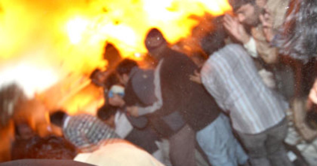A bomb explodes near a vehicle carrying former Pakistan prime minister Benazir Bhutto on Thursday at a political rally in Rawalpindi.
