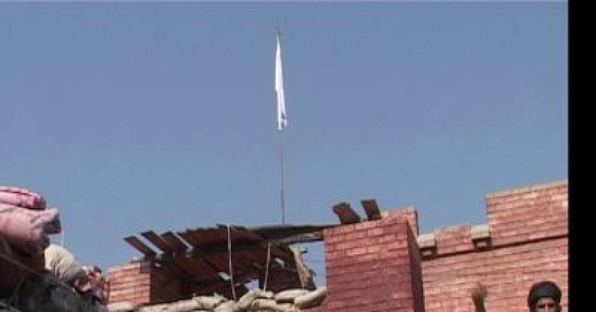 Image: The Taliban flag at Matta police station in Swat (Photograph: Himran Alexander)