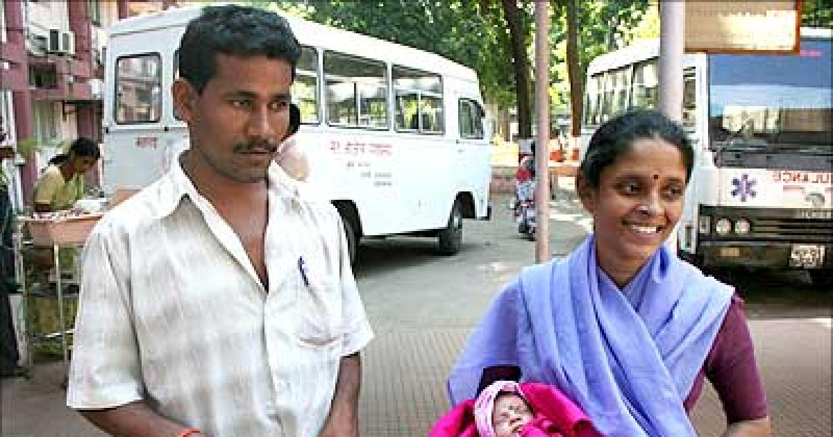 Image: Shamu Chauhan with his wife Viju and infant Goli outside the Cama hospital. Text: Vaihayasi Pande Daniel. Photograph: Reuben N V