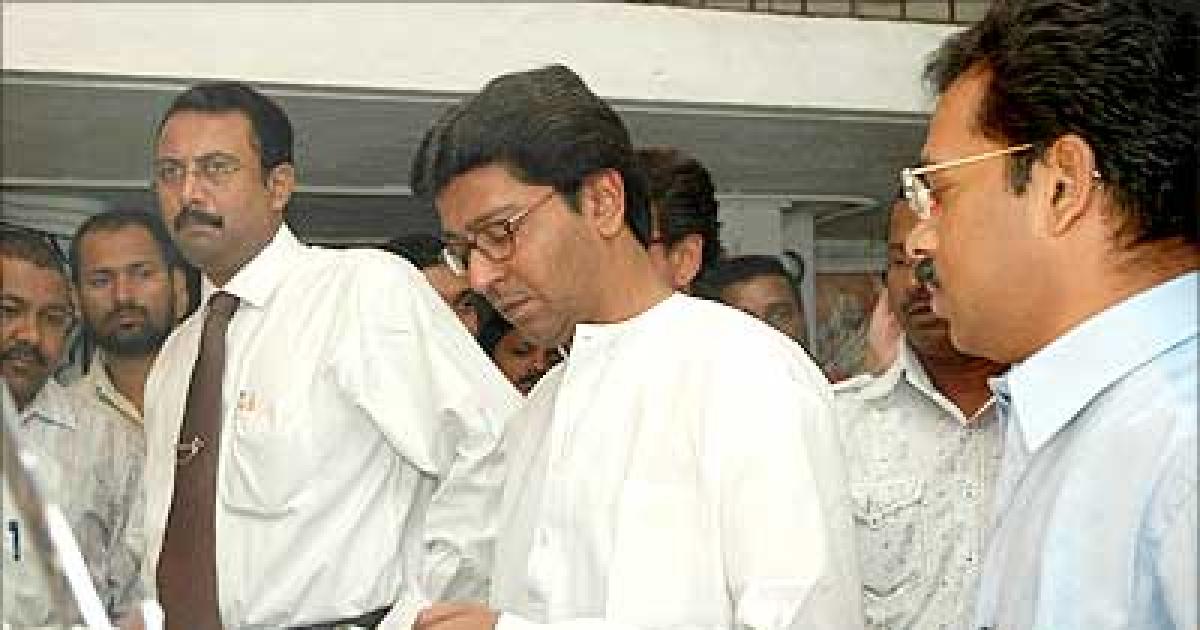 Image: MNS President Raj Thackeray at the Kherwadi police station.