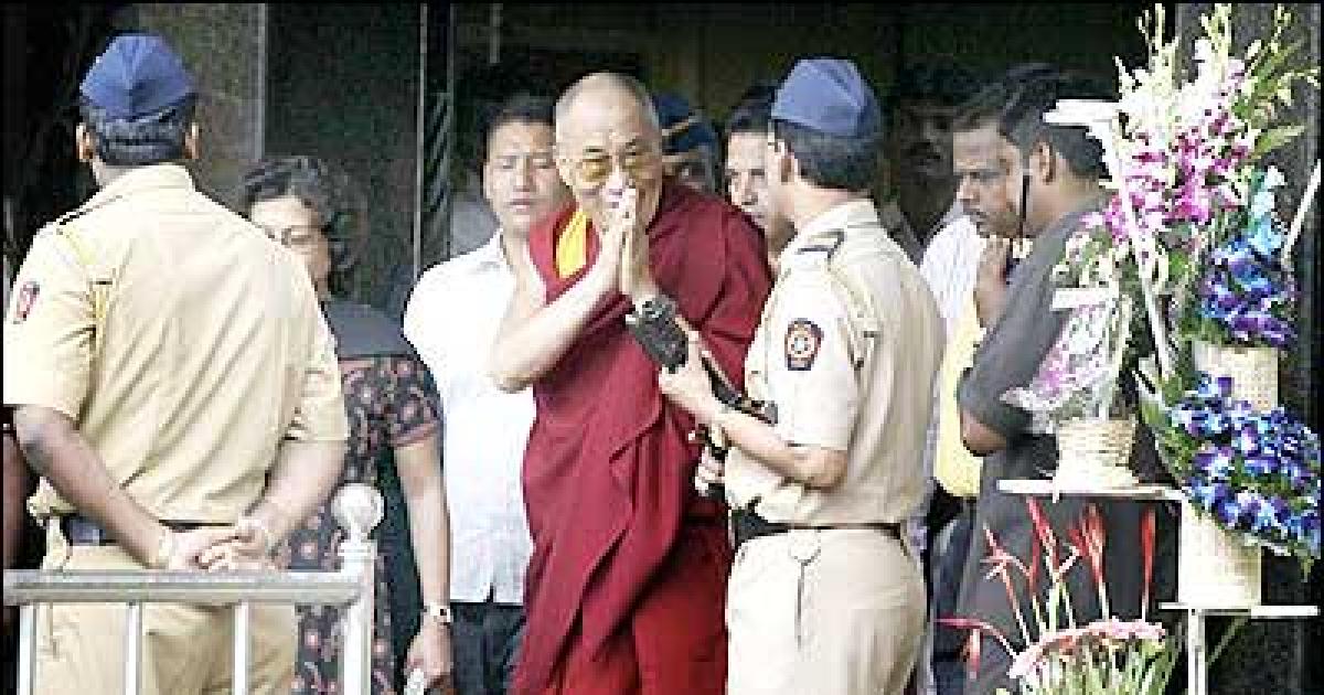 The Dalai Lama gestures (see the picture) as he leaves Leelavati Hospital in Mumbai on Monday. The Dalai Lama was discharged from the hospital four days after he was admitted with abdominal discomfort.