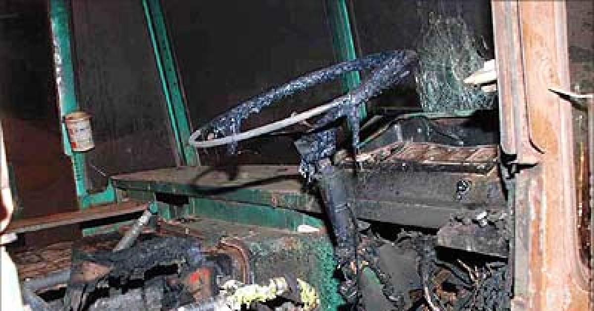 Image: One of the lorries damaged by the protestors | Photograph: Daya Kukkaje daijiworld