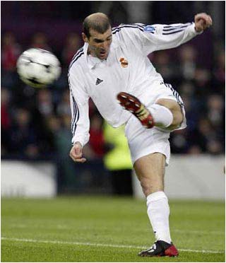 Zinedine Zidane connects a cross from the left flank from Roberto Carlos (not in pic) to score what turned out to be the match winner. It was a brilliantly-executed left-foot volley that beat Leverkusen goalkeeper Hans-Joerg Butt hands down.
