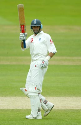 Hussain acknowledges the applause of the Lord's crowd on reaching his 50.